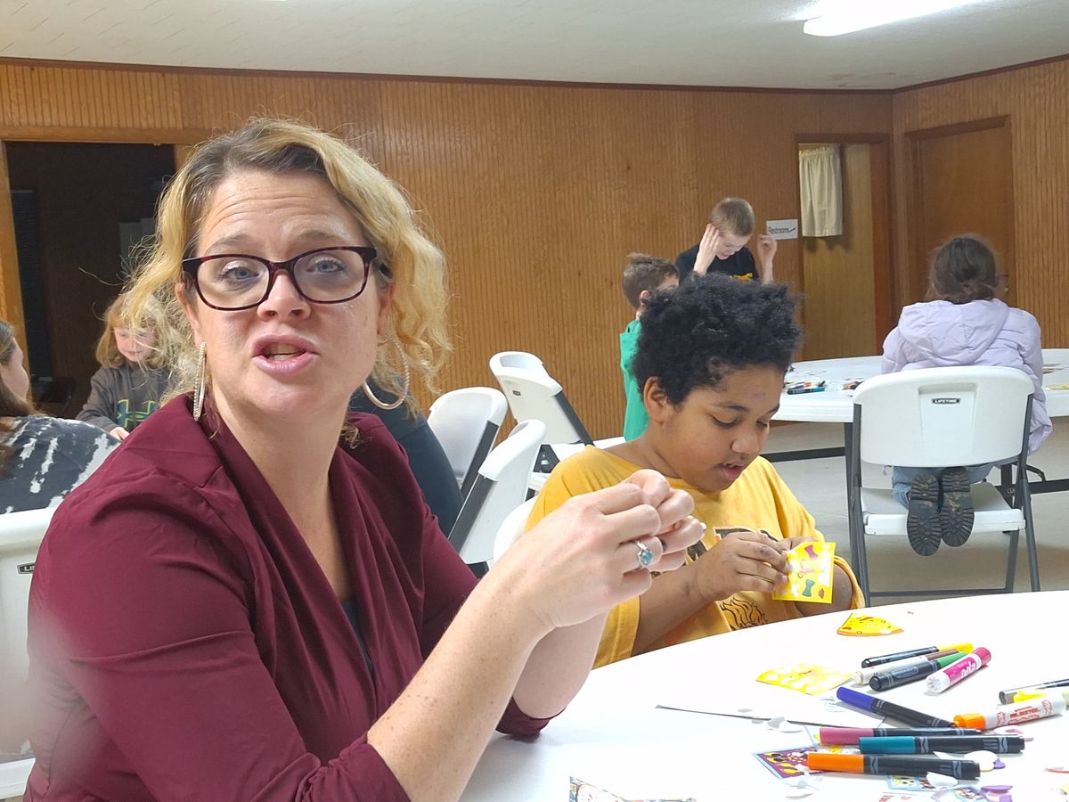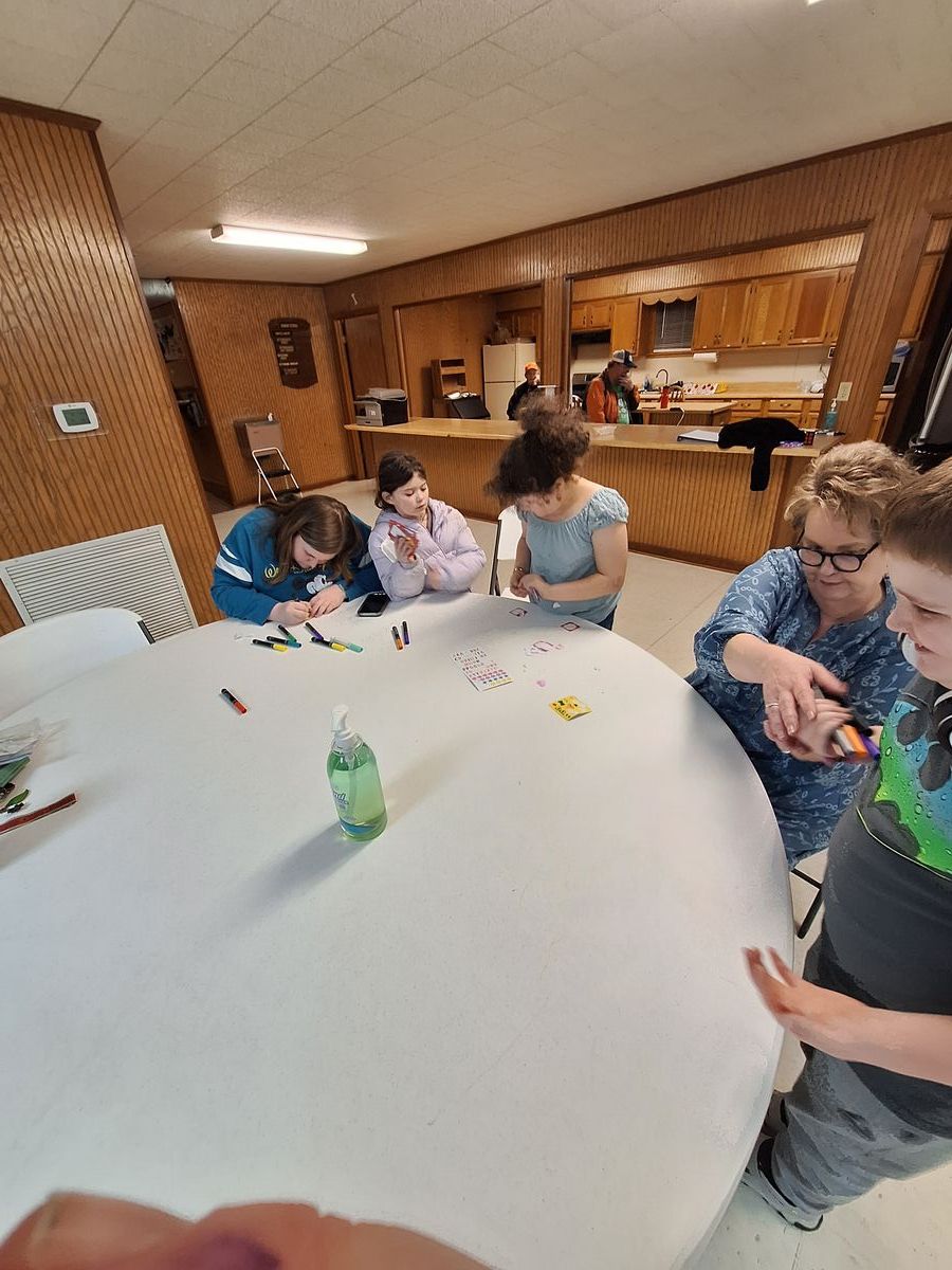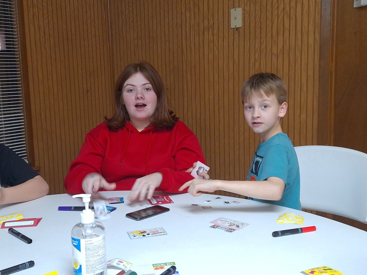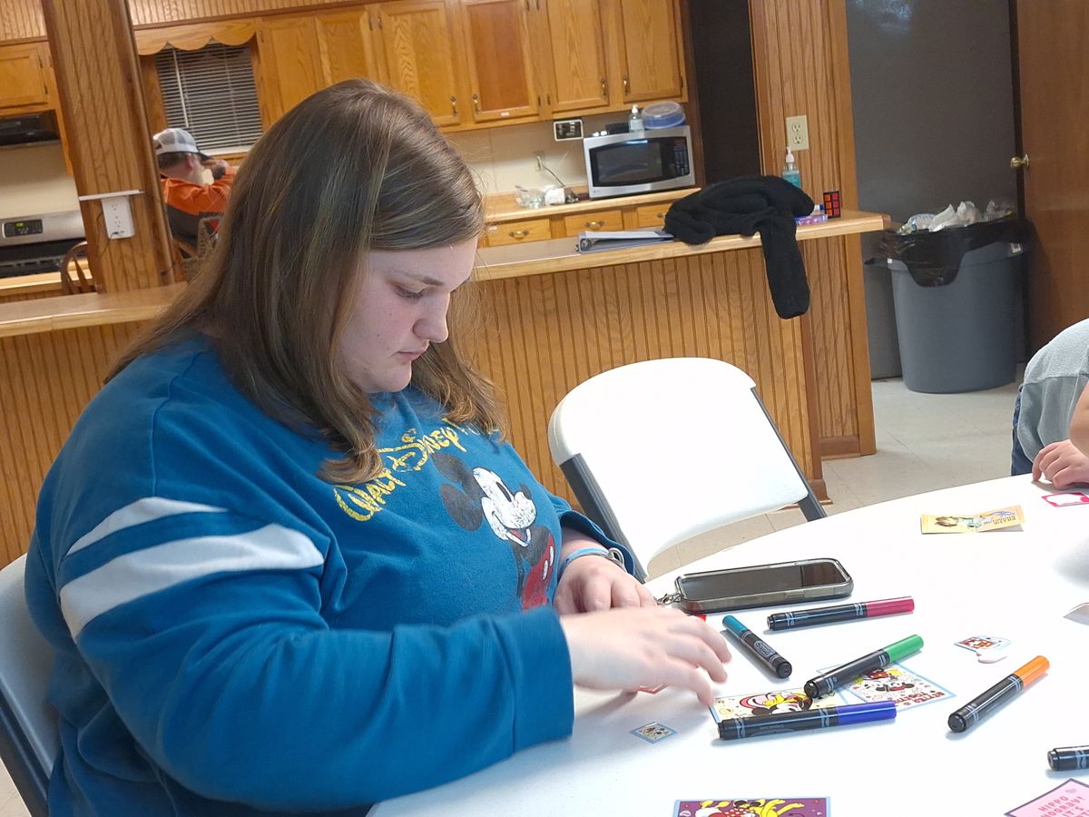 Making Valentine's Day cards for nursing home residents in 2024.